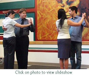 The Pacific Dance Studio was very professional and glamorous and put on quite a show. Not only were the two dancers very entertaining, but several people from the audience joined them. Tami Sadusky, director of GCA, demonstrated some amazing moves.