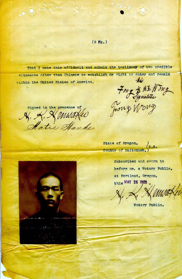 In the matter of the application of Fong Wong for admission to the United States as a returning native born citizen, 1905-1909. Record Group 85, Box 80, File RS2706, Fong Wong. Immigration and Naturalization Service, Seattle District Office, Chinese Exclusion Act Case Files, c.1882-1920. National Archives and Records Administration—Pacific Northwest Region (Seattle).