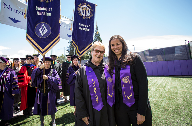 During the Commencement ceremonies, alumni volunteers watch over the banners, so that the gonfalonieres can enjoy their graduation experience. These volunteers are called Guardians of the Gonfalon, and they have been part of graduation exercises for more than 20 years.