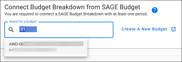 Once you have created or updated your SAGE MOD budget, connect your budget to the Modification Request. In the Search for a budget box you can type a budget title, budget number, or PI last name to display all eligible budgets matching your criteria.