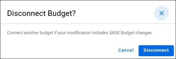 Selecting this link will open the Disconnect Budget? dialog window. The following image shows the dialog window: