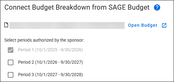 The following image shows the Connect Budget Breakdown from SAGE Budget portion of the Budget & Award Lines form section, with multiple periods.